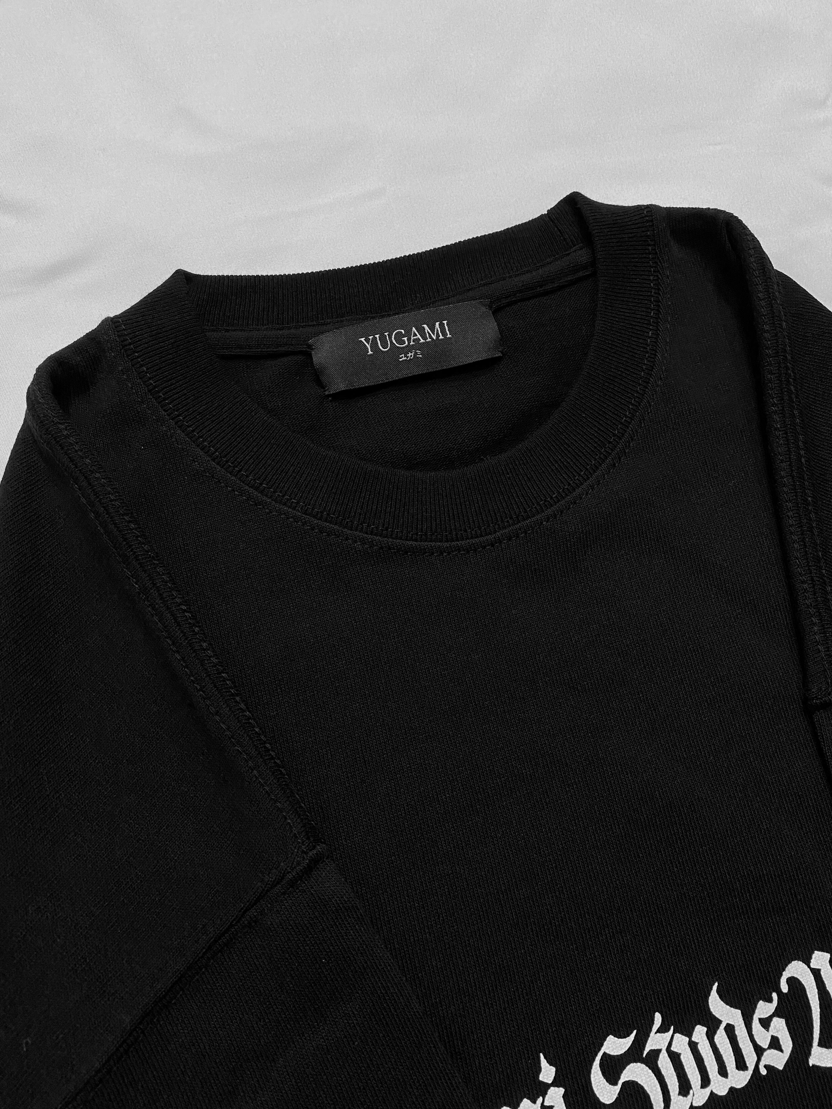 ブランドの新ロゴと、"スタッズワークス"の文字がプリントされた9オンスの厚手長袖Tシャツ。